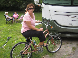 David and all were glad to return back to the camper. The 8 mile ride was nice but there were so many BUGS hitting us all the while. You just had to keep swatting. ICKY! Couldn't wait to get back. On the way we saw a parking lot of tailgaters for a University football game. Confirmed I am not missing much by not being able to do that on the Sabbath.